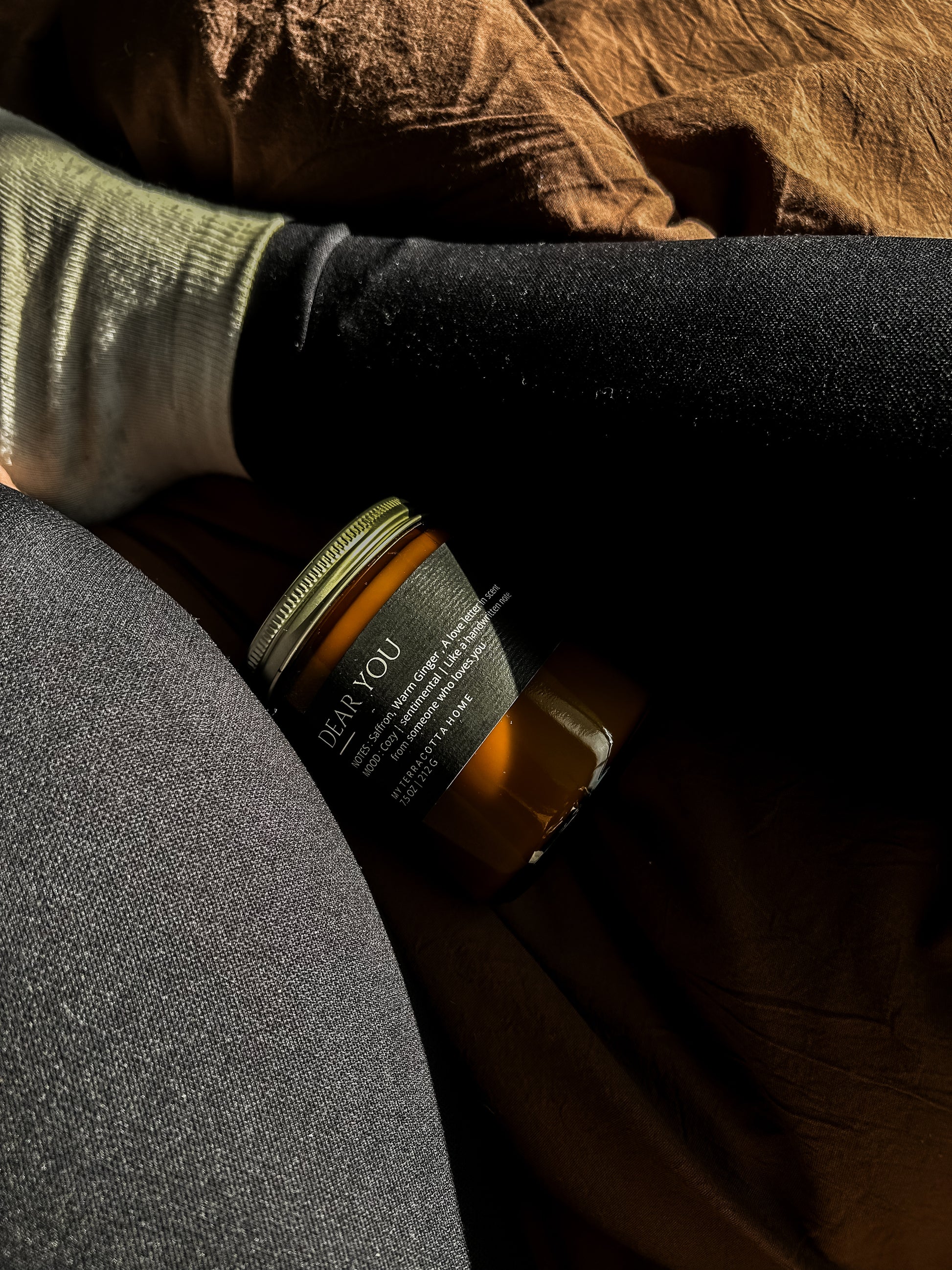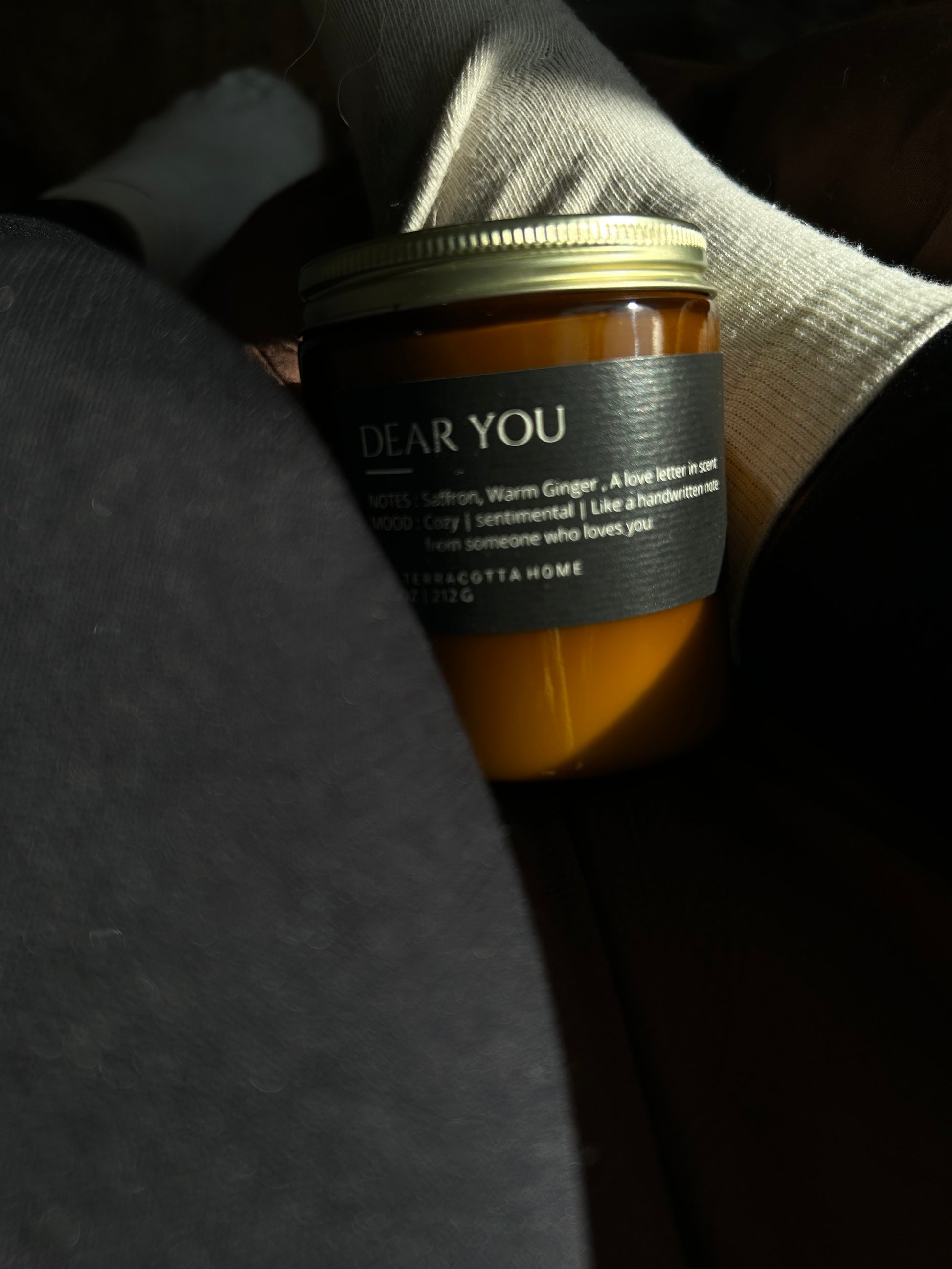 Hand-poured with care, Dear You is inspired by those in-between moments that remind you who you are: soft yet strong, grounded yet glowing. The scent of saffron and warm ginger wraps around you like words you needed to hear, a reminder that you’re already the love letter.
